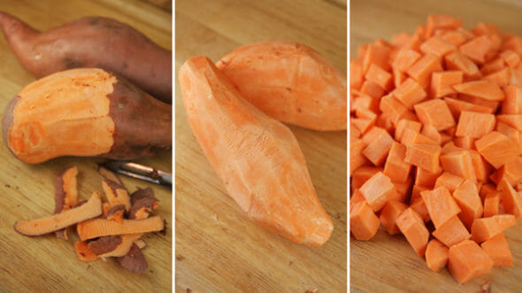- 1 ½ lbs sweet potatoes peeled and diced into ½ inch cubes