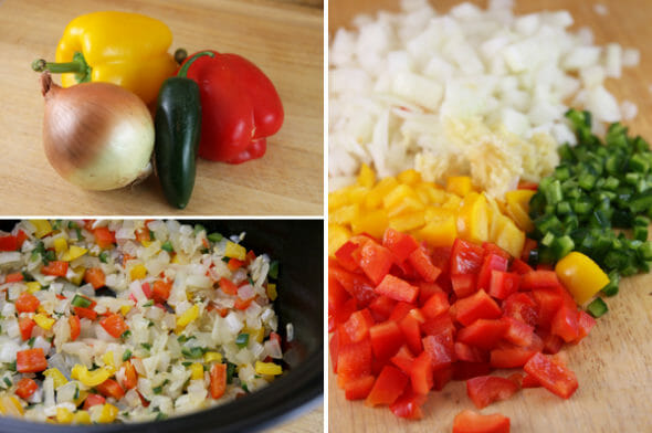 - Sauté onion, garlic, bell pepper, and jalapeño until tender; transfer to the slow cooker. This step might feel unnecessary, but you’ll get deeper flavor, better texture, and overall better dishes when you follow full instructions that call for cooking things before tossing them in the slow-cooker.