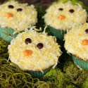 - Frost cupcakes (tint frosting yellow if desired) and cover with coconut. Place 2 M&M's on for eyes and a candy beak.