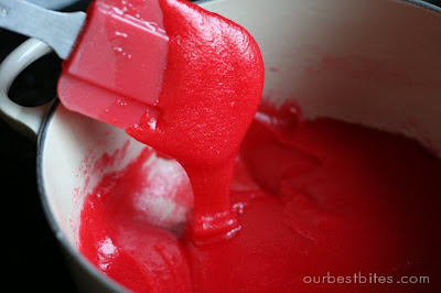 Increase heat and bring to a boil. Then reduce heat so it just simmers. Continue simmering for 5 minutes. You’ll start off with a mixture that’s sometimes thick (depending on the flavor, see note at end) and as it cooks the sugar will dissolve and it will become a little more liquid-ish.