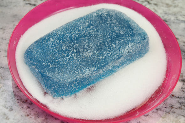 - Once they’re in their containers or pans, chill them for at least 4 hours in the fridge. When they’re chilled and set, pull the mixture out by the plastic and peel off onto a cutting board that’s been sprinkled in sugar. Since I was making small batches, I placed them directly on a plate of sugar and turned to coat all sides.