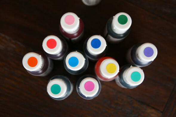 - If you’re experimenting with small batches in random-sized containers, a good trick is to use a measuring cup to measure how much water fills the container up about 1/2 inch so you know how much sugar mixture to color.